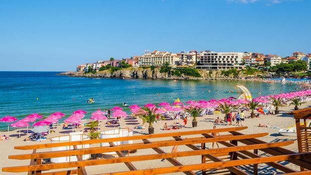 Der strand in goldstrand ist einer der größten in bulgarien.